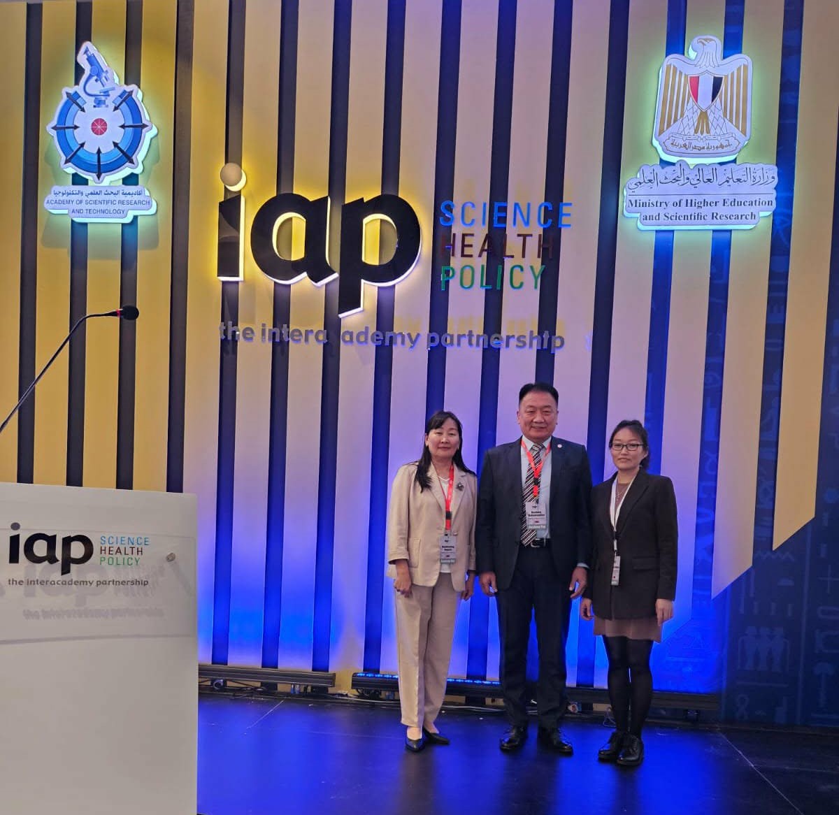 Арабын Бүгд Найрамдах Египет Улсын нийслэл Каир хотноо 2025 оны 12 дугаар сарын 8–11-ний өдрүүдэд дэлхийн 100 гаруй орны 155 шинжлэх ухааны академи (Ази-Номхон далайн 39, Африкийн 24, Америк 30, Европын 47, Дэлхийн болон бүс нутгийн 9, Ажиглагч гишүүн байгууллага 6)-ийг нэгтгэсэн Академи хоорондын түншлэл (InterAcademy Partnership, IAP) олон улсын байгууллагаас Арабын Бүгд Найрамдах Египет Улсын Шинжлэх Ухааны Судалгаа, Технологийн Академитай хамтран “Өөрчлөлт, шинэчлэлийн эрин үед шинжлэх ухаан, бодлого, нийгмийн уялдаа холбоог бэхжүүлэх нь” сэдэвт олон улсын эрдэм шинжилгээний хурал, Ерөнхий чуулганыг зохион байгууллаа. Тус үйл ажиллагаанд дэлхийн 68 орны 164 төлөөлөгч оролцсон нь Академи хоорондын түншлэл олон улсын байгууллагын өргөн цар хүрээ, олон талт байдлыг илтгэж байлаа.